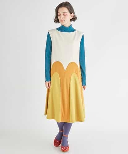 カットソーのポンチ素材をオリジナルカラーで染め大胆なパッチワーク使いのワンピースを作りました。 フレンチスリーブで中にインナーと合わせたりカーディガンを羽織ったりと通年着回しを楽しめるデザインです。 伸縮性があり堅苦しくなりすぎない着心地の良いワンピースです。 同じテキスタイルのジャケット【GJTLD-50170】と合わせてお召いただけます。【GJHLD-50190】のスカートもオススメです。