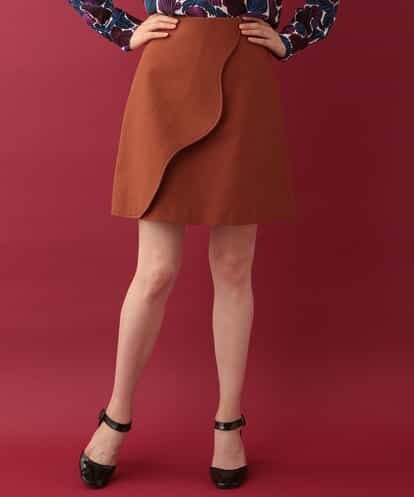 表情感のある織り地のコットンテキスタイルで仕立てたスカート。フロントは、大胆に重ねたラップタイプのデザインが目を惹く一着です。大きなカーブを描くスカラップカットに、デザインステッチをあしらったディティールもアクセントになっています。※バックファスナーmodel:H170 B81 W59 H88 着用サイズ:M