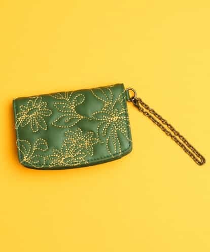 花刺繍 パスケース グリーン フリーサイズ Sybilla(シビラ) ☆キルティング加工をすることでタッチ感も上がり、使い心地も抜群です。クミンの花を・・・62235-GS8GD050683500 イトキンオフィシャル ITOKIN ONLINE STORE スマホで買える最新ファッション通販