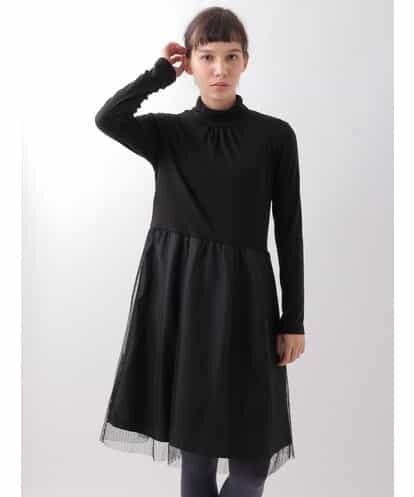 ベアスムース ソフトチュール付きボトルネックワンピース ブラック 40