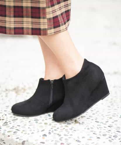 ◆安定感のあるウェッジソール◆ウェッジソールの安定感あるショートブーツ。スエード調の素材でカジュアルからフェミニンまで幅広いスタイルに取り入れられます。すっきりとしたシルエットがポイント。