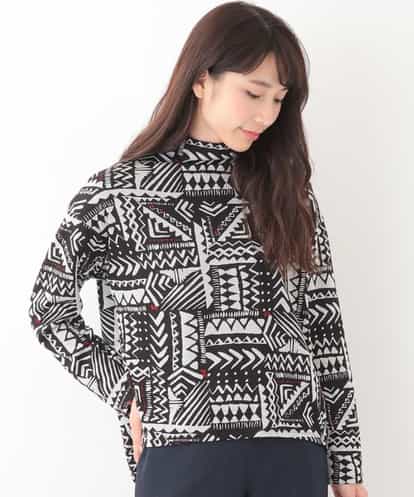 オリエンタルプリントハイネックカットソー ブラック 38