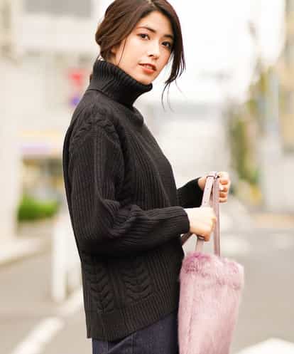 サイドケーブルタートルネックニット[WEB限定サイズ] ブラック 42