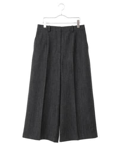 ウール混の温かみのある素材感。冬の定番のツィード素材を使用しワイドクロップドパンツ。ダブルタックのゆったりとしたヒップ周りに、ゆったりと広がるワイドシルエットがトレンド感のある一着です。センタープレスを施したモード感のある雰囲気に、ポケット口やウエストベルトにはデザインステッチをあしらいアクセントをプラスしました。同じテキスタイルで仕立てた【RMHAH57230】もお薦めです。※裏地付き