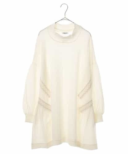 上質な着心地が特徴の繊維長の細い梳毛糸をベースに、スパークナイロンをカバーリングした糸とヴィスコースの光沢糸を使った表情感のあるテキスタイル。小さなフリルの様に見える編み地を部分的に使ったチュニックプルオーバー。中心に向かって施したリブがすっきりと着こなせるデザイン。サイドから施した立体的なニットレースがアクセントに。ギャザーを寄せてフェミニンな印象に仕上げた女性らしいシルエットも魅力です。立体感のある袖がフェミニンムードをプラス。同ラインで仕立てたトップス【RLFAH71220】【RLFAH70260】もおすすめです。
