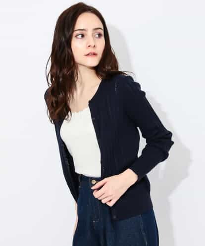 【洗える】透かしレース編みカーディガン ネイビー 38