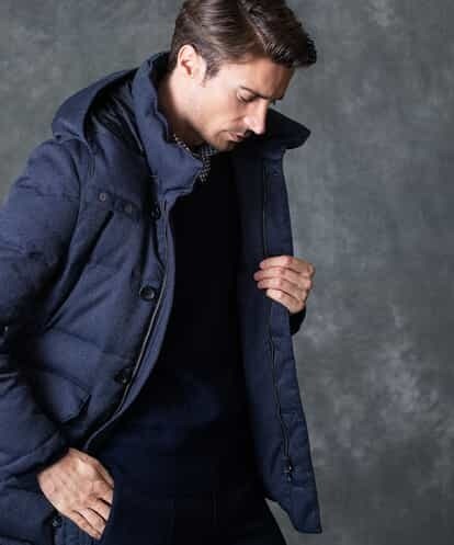 ビジネスシーンから週末のプライベートタイムまで ウール調の豊かな表情が特徴のダウンハーフ丈ブルゾン 軽くて、シワになり難く、保温性があり、イージーケア性があります ビジネスシーンでも活躍する、オンオフ兼用のマルチダウンブルゾン WOOL LIKE POLYESETER のFORMOZAシリーズのカルゼ組織素材 ウール調の表情がある合繊素材です。 軽くて、シワになり難く、保温性があり、イージーケア性を兼ね備えた素材 *フードはファスナーでの脱着が可能。フードを外してスッキリスタンドでビジネススタイル *ビジネスでもカジュアルでも活躍するアクティブなハーフコート着丈設定 *脇のフラップ付きポケットと、脇ウォームポケットの袋布には、 起毛トリコット素材を使用し、冬の寒さを和らげます。 太陽光の下で撮影した為、現物の色味に若干異なる可能性がございます。 ご了承くださいませ。