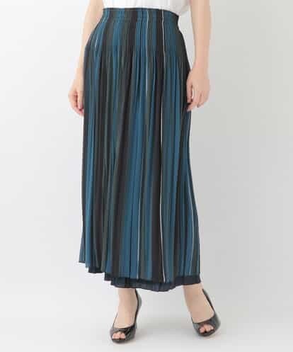 【洗える・リバーシブル】マルチストライププリーツパンツ ネイビー 9
