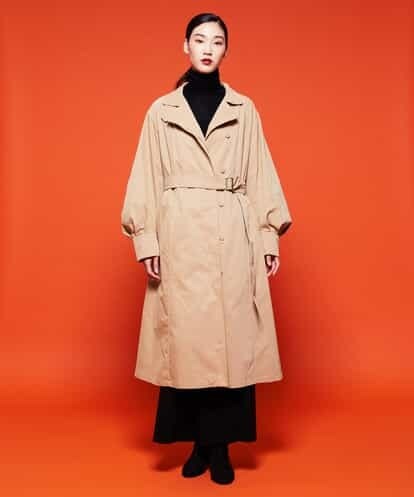 ボリューム感がありながらスタイリッシュに着こなせるトレンチコート。タックでボリュームをつけた袖にリボンのディテールを施したさりげないポイントがおしゃれな一着です。中綿のライナーが付いているため、寒さが強い時期でも活躍。春にはライナーを取り、ピンクペッパー柄が目を惹く裏地が気分を上げてくれるコートです。※ライナー、裏地付き model:H170 B80 W58 H81 着用サイズ:M