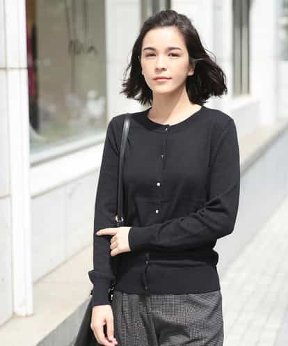 襟元の太めのリブがさりげないトラッド感があるクルーネックのカーディガン。 ハイゲージで編み立てたしっかりと伸縮性のある着心地も抜群の一着です。 ボタンを全部閉めてプルオーバーとしてのスタイリングもおすすめです。 ゴールドのボタンが大人なアクセントに。 model:H160 B81 W58 H81 着用サイズ:M