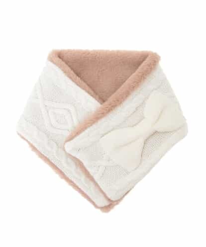 ◆リボンデザインが可愛いティペット◆ニットとフェイクファーとのリバーシブルストール。差し込み部分のリボンデザインがポイントです。冬の防寒アイテムとしてはもちろん、コーディネートのワンポイントとしても可愛いティペットです。
