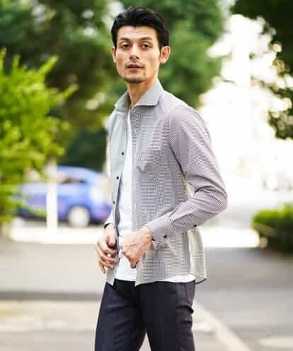 シャツ(クールマックスミニチェック) グレー 52