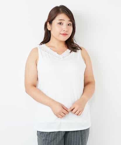 【大きいサイズ】レースVネックタンクトップ アイボリー 2 eur3(エウルキューブ) レディース*レースはVネックのスッキリした開きになっています。襟ぐりにレースをあしらったイ・・62235-OLKLA170398002 イトキンオフィシャル ITOKIN ONLINE STORE タブレット&スマホ&PCで通販