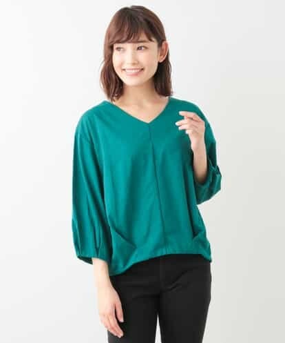 ◆ゆったりシルエットがデイリー使い◎◆Vネックのブラウス見えカットソー。袖のタックが立体的なシルエットで手首をほっそり見せてくれます♪ブラウス感覚で着用いただけるおすすめの一着です。※34(XSサイズ)・42(XLサイズ)はWEB・一部限定店舗での販売です。