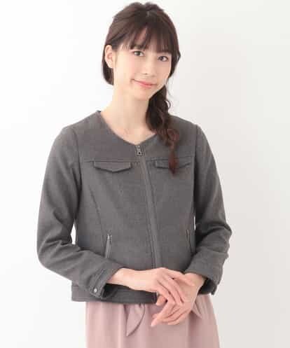 レーヨンミックスの柔らかな風合いのテキスタイルで仕立てた、ジップアップジャケットです。小さなフェイクフラップや細めのカフスに、メタルジップやメタルボタンがアクセントになった一着です。顔周りをスッキリと魅せてくれるノーカラーもポイント。ショートな丈感がスタイリングを上品にまとめてくれるジャケットです。※裏地付きmodel:H165 B76 W61 H84 着用サイズ:M