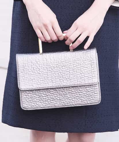 フェイクレザーを使い、凹凸のある表面感を表現したミニショルダーバッグです。メタルのハンドルは本体の側面に沿って折りたためるので、クラッチとしても使えて、特別なシーンにも最適。ショルダー付きなので肩掛けもできて、2wayで使える便利アイテムです。マチがあるので長財布、スマホを入れられる収納力で、アクセサリー感覚で合わせられるバッグです。