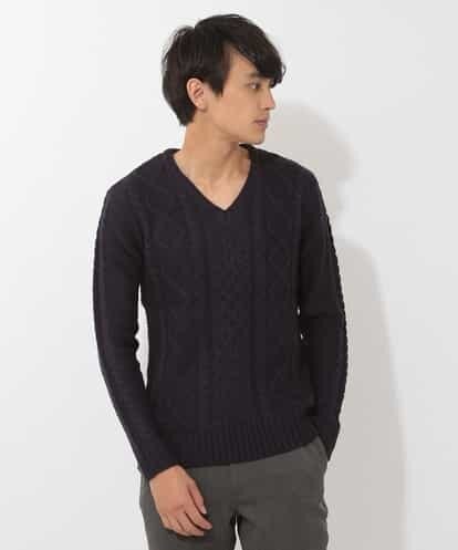 【WEB限定アイテム】Vネックケーブルニット ネイビー