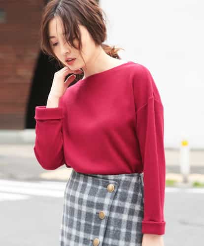 ◆普段使いにも使いやすい1枚で映えるアイテム◆モチモチした素材感が気持ちいいカットソーのプルオーバー。ボートネックで衿元は女性らしく、袖はコートインしやすいデザイン。この時期のコーディネイトに映える肌なじみの良いレッドがオススメ。※34(XSサイズ)・42(XLサイズ)はWEB・一部限定店舗での販売です。