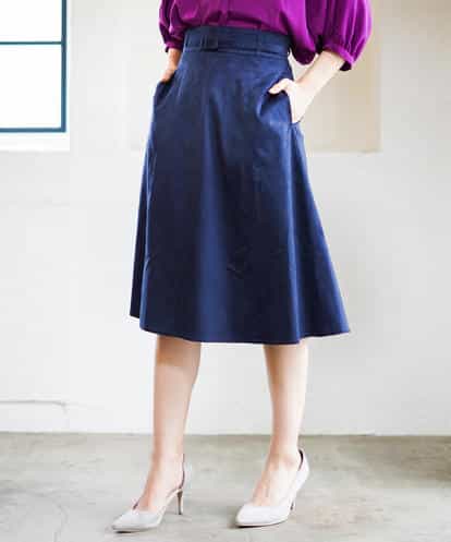 ■スウェードライクな素材が上品なフレアスカート■ 共地の細ベルトがクラシカルな印象のスウェードライクなフレアスカート。ハイウエスト気味なウエストに、裾のフレアー分量が女性らしく着こなしていただけます。膝が隠れる着丈は上品できちんとしたシーンにも対応してくれます。※屋外での撮影は色味が多少異なる場合がございます。商品の色味は、スタジオ撮影の画像をご参照ください。 ※サンプルでの撮影となるため、実際にお届けする商品と仕様やサイズが異なる場合がございます。