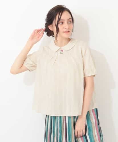 ドビーストライプ フラワー刺繍プルオーバーブラウス ベージュ 42