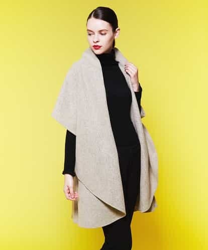 ドレープが美しくでるケープカーディガン。リング糸を使用した柔らかく表情感ある生地は分量をだしてもきれいにまとまります。円状のパターンどりがユニークで、上下逆さまにして、スタイリングに合わせて丈感を変えて着ていただけます。model:H170 B80 W58 H81 着用サイズ:M