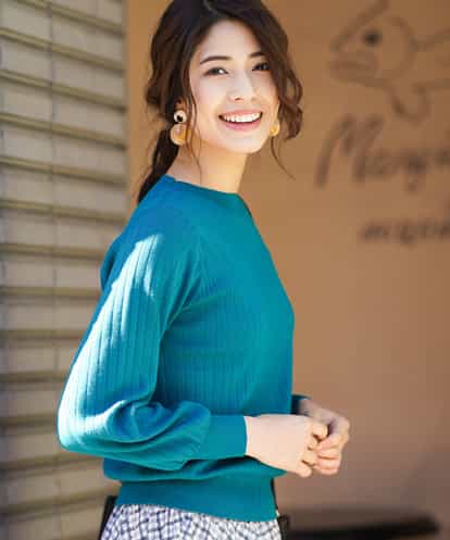 リブ切り替えパフスリーブニット[WEB限定サイズ] グリーン 36